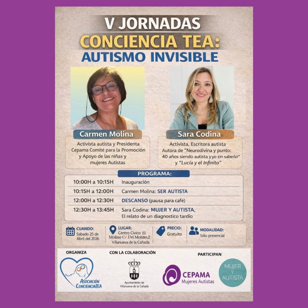 📣 El próximo sábado 25 de abril participamos en las V Jornadas de Concienciación de Autismo organizadas por la Asociación Conciencia TEA en el Centro Cívico El Molino de Villanueva…