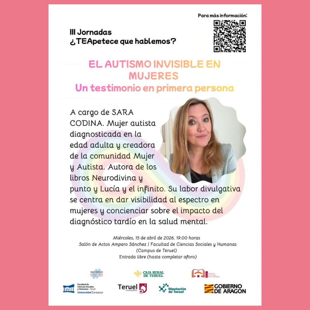 SESIÓN 1: Miércoles, 15 de abril de 2026, 19:00 h.El autismo invisible en mujeres.Un testimonio en primera persona.Conferencia y debate a cargo de Sara Codina LUGAR: Salón de Actos Amparo…